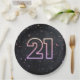Glowing neon sign with confetti on black background for 21st birthday party.