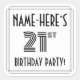 21st Birthday Party: Art Deco Style + Custom Name Square Sticker