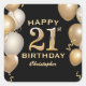 21st Birthday Party Black and Gold Balloons Square Sticker
