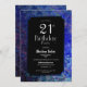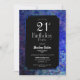 A black 21st birthday party invitation featuring a rich blue painted border.