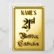 The front of this ornate twenty-first birthday celebration foil announcement card design features the message “21st Birthday Celebration” in elaborate script-style text. It also features an editable name. The back features personalised details about the event, such as the date, time, location, and any other relevant information. Elegant, elaborate, personalised invitations like these might be used to invite guests to a birthday party being held to honour somebody’s 21st birthday. [~Z0000596]