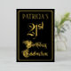 The front of this fancy and elegant foil twenty-first birthday party/celebration invitation design features the message “21st Birthday Celebration” in luxurious script-style text. It also features an editable name. The background of the front is coloured black by default (although it can be customised to a different colour). The back features personalised details about the event, such as the date, time, location, and any other information that may be relevant. Opulent, luxurious, customised invitations like these might be used to invite guests to a birthday party/celebration being held in celebration of somebody’s 21st birthday. [~Z0000589]