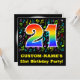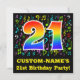 The front of this fun, vibrant, and colourful birthday party invitation design features a large number "21" with a rainbow spectrum gradient inspired pattern, along with a customisable name and the message "21st Birthday Party!". Part of the background features a fun pattern of various music notes and symbols having a variety of colours and sizes. The back features customised information/details about the event that the potential guests are being invited to. Joyful, customised birthday celebration invitation cards like this might be sent to potential guests of a celebration being held to celebrate a musician’s, a song composer’s, a singer’s, or somebody else’s twenty first birthday. [~Z0000427]