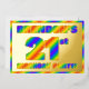 The front of this joyful twenty-first birthday party foil invitation card features a personalised name, a large number “21st”, the message “BIRTHDAY PARTY!”, and a border, all featuring a fun, multicolored, rainbow spectrum inspired gradient pattern. The back features personalised details about the event, such as the date, time, place/venue, and any other important information. Upbeat, vibrant, personalised invitations like these might be used to invite guests to a birthday gathering/party being held in celebration of somebody’s 21st birthday. [~Z0000593]
