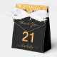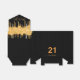 Elegant, classic, glamourous and girly for a 21st birthday party. A chic black background. Decorated with faux gold glitter drips, paint dripping look. Personalise and add a name. With the text: Thank You plus the birthday girls name. The name is written with a modern golden coloured hand lettered style script with swashes. Number 21 is written with a balloon style font.