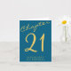 21st Birthday Party Gold Script Blue Card