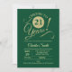 21st Birthday Party Invitation in dark emerald forest green with faux glitter gold pattern. Features trendy typography script font. Simple modern design, perfect for an elegant party. Cheers to 21 years! Can be personalized into any age! Please message me if you need further customization.