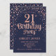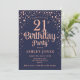 Elegant design in navy and faux glitter rose gold. Features stylish script font and confetti. Message me if you need custom age.