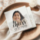 This custom 21st birthday napkin features the guest of honour's personalised photo, name, and birthday, along with the word "Cheers" in elegant black calligraphy script. A white screen helps make the text pop. A great way to celebrate someone who's turning 21!