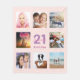 A gift for a woman's 21st birthday, celebrating her life with a collage of 8 of your photos of her friends, family, interest or pets. Personalise and add her name, age 21 and a date. Date of birth or the date of the birthday party. Pink and purple coloured letters. Girly blush pink background colour.