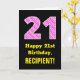 21st Birthday: Pink Stripes and Hearts "21" + Name Card