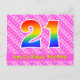 21st Birthday: Pink Stripes & Hearts, Rainbow 21 Postcard
