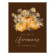 Elegant orange watercolor pumpkins are surrounded by fall flowers and foliage. The rich dark background frames it to perfection, making it perfect for an autumn birthday party. Available on paper or as a digital download.