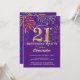 21st Birthday Purple and Gold Rainbow Fireworks Invitation