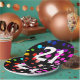 Neon rainbow dot pattern on black background for 21st birthday party.