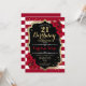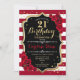 21st Birthday - Red Gold Black White Stripes Roses Invitation