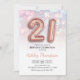 21st birthday party invitation. Elegant design in faux glitter rose gold with pastel pink and purple lights. Invite card features gold number 21 balloons and script font. Perfect for a stylish bday celebration. Message me if you need custom age.
