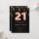 This elegant and glamourous birthday invitation features the number 21 in rose gold with rose gold confetti. The text combines handwritten script and modern sans serif fonts for a classy and sophisticated look.