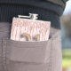 The flask itself is fine. It’s a cheap flask, obviously bought in bulk, however am prepared to overlook that. Given that it is a personalized item, I would have liked to have seen gift boxing instead of the generic packaging. Terrible printing, and/or quality. It’s a cheap, tacky vinyl. It is not cut straight and is also applied in a way that it is overhanging the bottom, causing the glue to catch on items and it will eventually roll and tear, damaging the wrap.