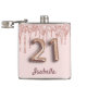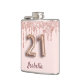 A gift from friends for a girly and glamourous 21st birthday. A light rose gold, pink background with elegant faux rose gold drips, paint dripping look. The text: The name is written in dark rose gold with a modern hand lettered style script. Personalise and add a name. Number 21 is written with a rose gold balloon style font.