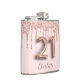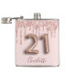 A gift for a girly and glamourous 21st birthday party. A light rose gold, pink background with elegant faux rose gold glitter drips, paint dripping look. The text: The name is written in dark rose gold with a modern hand lettered style script. Personalise and add a name. Number 21 is written with a rose gold balloon style font.