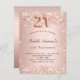 For an elegant 21st birthday party. A rose gold gradient background. Decorated with rose gold faux glitter dust. Personalise and add a name and party details. The name is written with a hand lettered style script. Number 21 is written with a balloon style font.