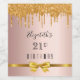 Elegant, classic, glamourous and girly style birthday label. Faux gold coloured ribbon and bow with faux gold glitter dripping. background. With the text: 21st Birthday. Template for a name written with a modern hand lettered style script.