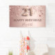 Elegant, classic, glamourous and girly for a 21st birthday party. Rose gold and blush pink, gradient background. Decorated with rose gold and pink stars. Personalise and add a name. With the text: Happy Birthday. The name is written with a modern dark rose coloured hand lettered style script. Number 21 is written with a balloon style font.