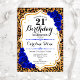 21st Birthday - Royal Blue Gold Leopard Print Invitation