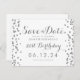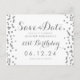 21st Birthday Party "Save The Date" template design with Silver Faux Glitter Confetti White and custom name and date text. Fully customisable!