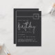 The modern minimalist layout pairs a deep matte black background with refined ivory-beige typography—featuring a bold sans-serif for the event details and a graceful handwritten script for the word “Birthday.” A sleek square badge highlights the milestone age, adding a sophisticated touch for any adult birthday celebration. NOTE: You can edit the age to any age!