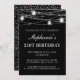 These 21st birthday party invitations feature a string lights and mason jar design with black background. The back of the invitation has a star and confetti pattern. Personalise these invitations with your own text.