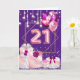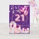 Celebrate your 21sth birthday with this modern and funky design featuring vertical hanging string lights below which is a faux gold hexagon frame surrounding the numbers twenty one. Below this are faux silver glitter sprinkles resting behind beautiful shiny gifts that have been wrapped in pretty pink vibrant paper. Delicate ribbons and tags appear on the presents. The message inside may be changed to suit your personal requirements. Ideal for women.