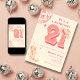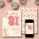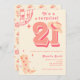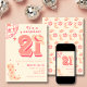 Celebrate a memorable surprise 21st birthday with a personalised invitation that exudes retro charm! This digital download features an ivory background adorned with a disco ball, stars, a cowboy boot, and a bold number 21 in shades of peach and pink, complete with a whimsical cowboy hat hanging on it. Perfect for a disco cowgirl or rodeo-themed birthday party, this invitation is sure to set the tone for a fun and festive celebration. Get ready to party in style with this unique and eye-catching design in peach and pink tones!