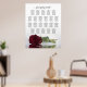 This elegant 22 table wedding seating chart features a beautiful photo of a single burgundy, maroon, or wine-red coloured rose reflecting in water with waves and ripples. The title reads "please find your table" in lacy script calligraphy. There is space for the couples' names and wedding date. This chart has table assignments for 220 guests 10 people per table.