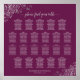 This simple yet elegant wedding seating chart contains space for 220 names at 22 tables with the traditional 10 seats per table. The cassis purple, magenta, or berry design features a pale grey script calligraphy title, and silver faux foil lacy frills in the corners. Wonderful way to help your guests find their tables while adding class, elegance, and style to your wedding reception.