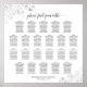 This simple yet elegant wedding seating chart contains space for 220 names at 22 tables with the traditional 10 seats per table. The black and white design features a pale grey script calligraphy title, and silver faux foil lacy frills in the corners. Wonderful way to help your guests find their tables while adding class, elegance, and style to your wedding reception.