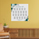 Add charm and sophistication to your wedding reception with this beautiful wedding seating chart, adorned with a rustic watercolor boho chic floral design. With seating assignments for up to 220 guests, each table accommodating 10 seats, this seating chart features a rustic blend of roses and flowers in shades of teal, turquoise, aqua, and cyan, gracefully intertwined with sprigs of eucalyptus leaves and garden greenery. The elegant script calligraphy title adds a touch of glamour, creating a sophisticated atmosphere for your special day, and there is room for the couple's names and wedding date at the bottom.