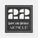 This Roaring '20s style inspired vintage appearance birthday-themed paper napkin design features a large art deco style inspired number "22", the message "Happy 22nd Birthday,", a customisable name, and a border pattern consisting of thin lines. Birthday themed paper napkins like this might be fun to use at a celebration being held to honour somebody who is celebrating their twenty second birthday. [~Z0000494]