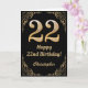 22nd Birthday Black and Gold Glitter Frame. For further customisation, please click the "Customise it" button and use our design tool to modify this template.