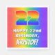 This fun and cheerful birthday themed paper napkin design features a large number “22” having a colourful rainbow spectrum inspired gradient pattern. It also features the message “HAPPY 22nd BIRTHDAY,”, and a customisable recipient name. The background also features a vibrant multicolored rainbow spectrum inspired gradient pattern. Exciting paper napkins like this might be fun to use at a party being held for somebody who is celebrating their twenty second birthday. [~Z0000573]