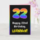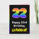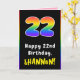 22nd Birthday: Colourful Rainbow # 22, Custom Name Card