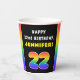 This upbeat and fun birthday paper cup design features a big number “22“ having a multicolored rainbow spectrum inspired gradient pattern, along with the message “HAPPY 22nd BIRTHDAY,”, and a personalised recipient name. Cheerful paper cups like this might be used when hosting a party for somebody in celebration of their twenty second birthday. [~Z0000639]