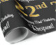 This stylish, luxurious, and elegant birthday wrapping paper design features a large ordinal number “22nd” having an imitation/faux gold-inspired gradient pattern, in addition to the birthday greeting message “Happy 22nd Birthday,” and a customisable recipient name in a script-style font. The background is coloured black. Birthday themed wrapping paper like this might be used when giving a gift or present in celebration of somebody’s twenty second birthday. [~Z0000515]