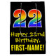 This colourful, exciting, and fun birthday-themed gift bag design features a large number "22" with a rainbow spectrum gradient inspired pattern, along with the message "Happy 22nd Birthday,", and an editable recipient name. The background is coloured black. A gift bag like this might be used when giving a gift or present in honour of somebody’s twenty second birthday. [~Z0000512]