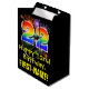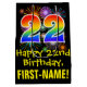 This exciting, fun, and colourful birthday-themed giftbag design features a large number "22" with a rainbow spectrum gradient style pattern, along with the message "Happy 22nd Birthday,", and an editable recipient name. It also features a colourful background pattern inspired by the appearance of bursting celebratory fireworks. A birthday themed gift bag like this might be used when giving a gift or present in celebration of somebody’s twenty second birthday. [~Z0000509]