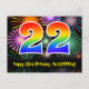 22nd Birthday – Fun Fireworks Pattern + Rainbow 22 Postcard