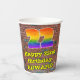 This exciting and vibrant urban street art and graffiti themed birthday paper cup design features a large number “22” having a colourful rainbow spectrum gradient inspired pattern. It also features the message “Happy 22nd Birthday,”, and a custom name. The background features a brick wall pattern. Vibrant, colourful paper cups like this might be fun to use at a birthday celebration being held in celebration of somebody’s 22nd birthday. [~Z0000543]