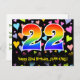 The front of this colourful, exciting, and fun birthday-themed postcard design features a large number "22" with a rainbow spectrum gradient inspired pattern, along with the message "Happy 22nd Birthday,", and a custom recipient name. The front additionally features a vibrant and colourful background featuring a pattern of loving heart shapes. The back features a custom birthday greeting message, or could perhaps be cleared and left blank if a message is to be written by hand instead. A birthday postcard like this might be a fun way to send birthday wishes to somebody who is celebrating their twenty second birthday. Postcards like this might also be used to invite guests to a birthday celebration being held for somebody who is turning 22 years old. [~Z0000448]