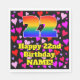 This happy and joyful birthday themed paper napkin design features a large number “22” with a rainbow spectrum gradient inspired pattern, along with the message “Happy 22nd Birthday,”, and a personalised name. The background features a pattern of heart shapes with colours like purple, red, and pink. Cheerful, happy paper napkins like this might be fun to have at a birthday celebration/party being held to honour somebody’s 22nd birthday. [~Z0000550]